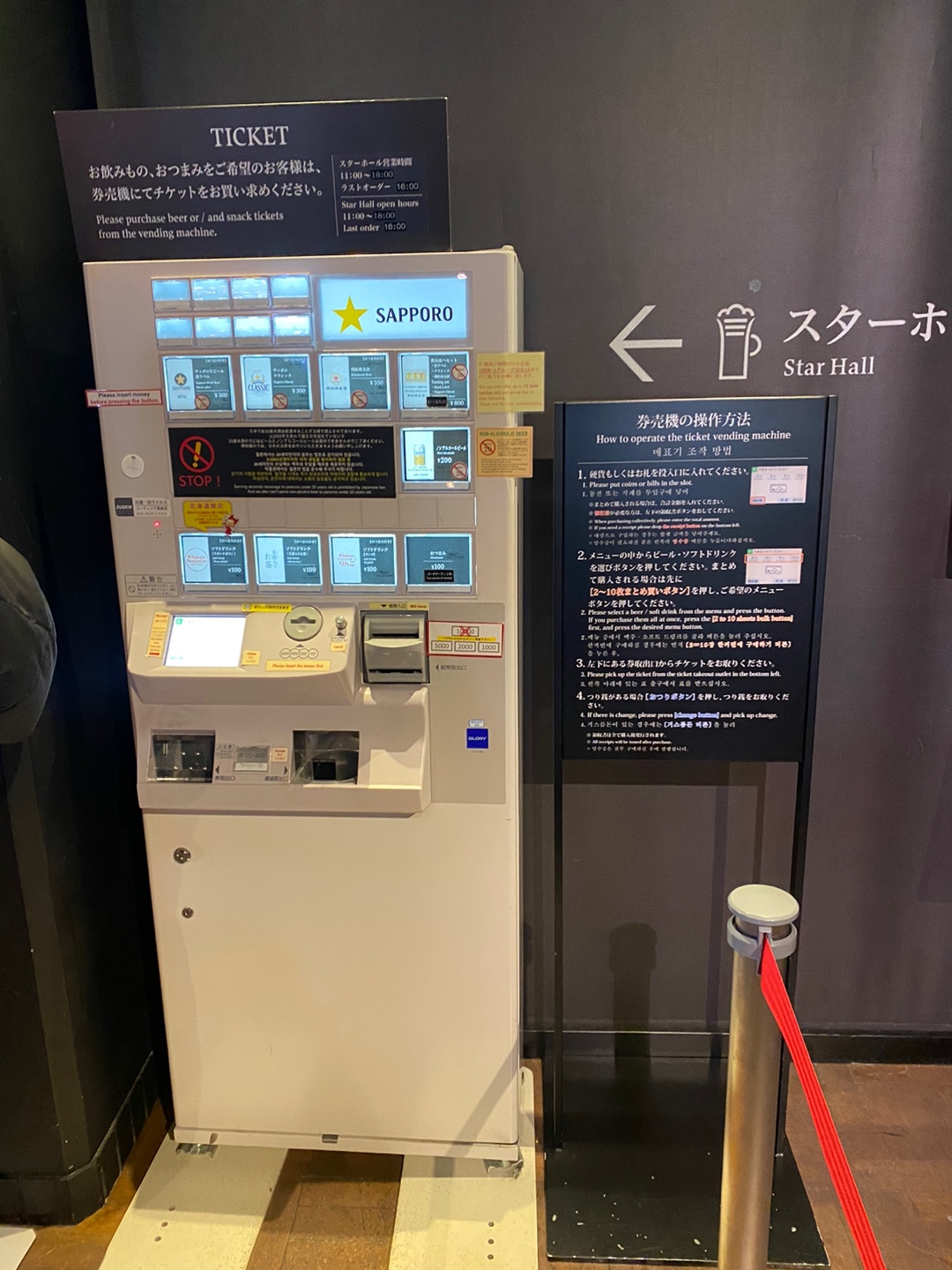 3종의 삿포로 생맥주를 맛볼 수 있어 설렘과 기대를 안고 자판기에서 주문을 했습니다.