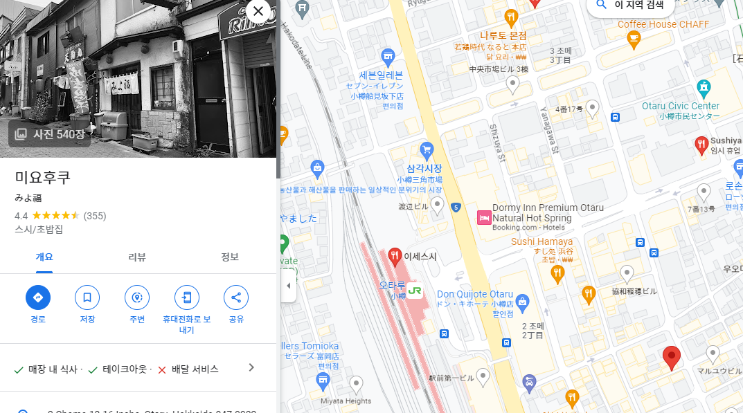 오타루 근처 초밥집 이름은 미요후쿠이고 가격도 비싸지 않아서 가성비가 괜찮습니다.